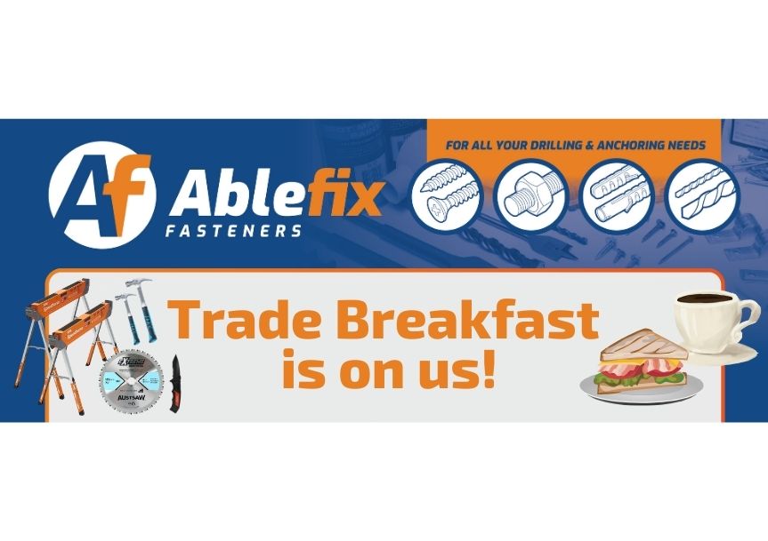 Trade Breakfast is on us! Come and enjoy a FREE bacon & egg roll with coffee at Ablefix Fasteners. 8th of September 2023 (Friday)